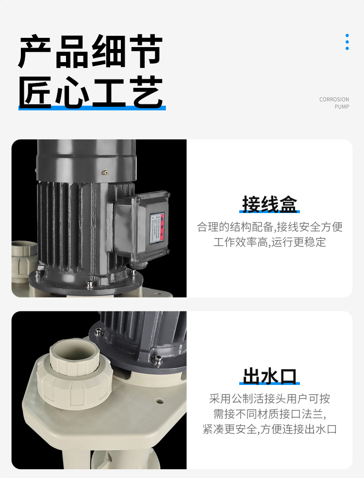 NHCN槽內(nèi)泵泵體采用FRPP PVDF材質(zhì)能耐高溫耐腐蝕雙層干式液封設(shè)計(jì),可防止馬達(dá)軸承被化學(xué)氣體侵蝕無(wú)軸封設(shè)計(jì),不會(huì)因空運(yùn)轉(zhuǎn)而損壞適合蝕刻噴洗設(shè)備.廢氣洗滌塔冷卻循環(huán)及搭配過(guò)濾器使用。